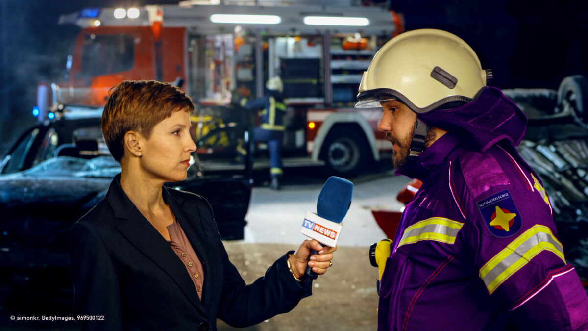 Bei größeren Schadenslagen sehen sich Notfallseelsorgerinnen und Notfallseelsorger manchmal in der Situation, vor laufender Kamera und eingeschaltetem Mikrofon Auskunft geben zu müssen.